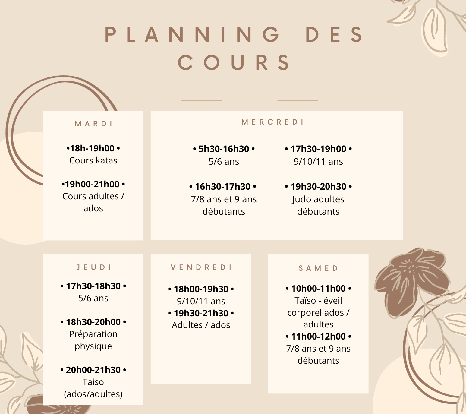 Nos cours sont conçus pour accueillir judokas débutants et expérimentés de tous âges. Chaque séance est adaptée pour répondre aux besoins spécifiques de chacun, assurant un environnement d’apprentissage inclusif où tous les niveaux peuvent s’épanouir et progresser.